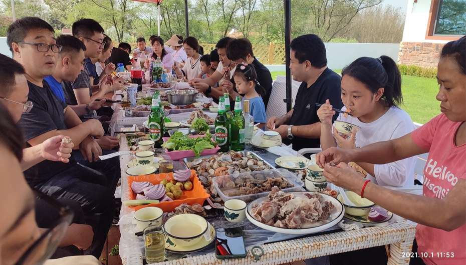 不知不觉就到了午餐的时间,大家围坐在餐桌旁,享用美食的同时,也感受到了工作之余的这份惬意。